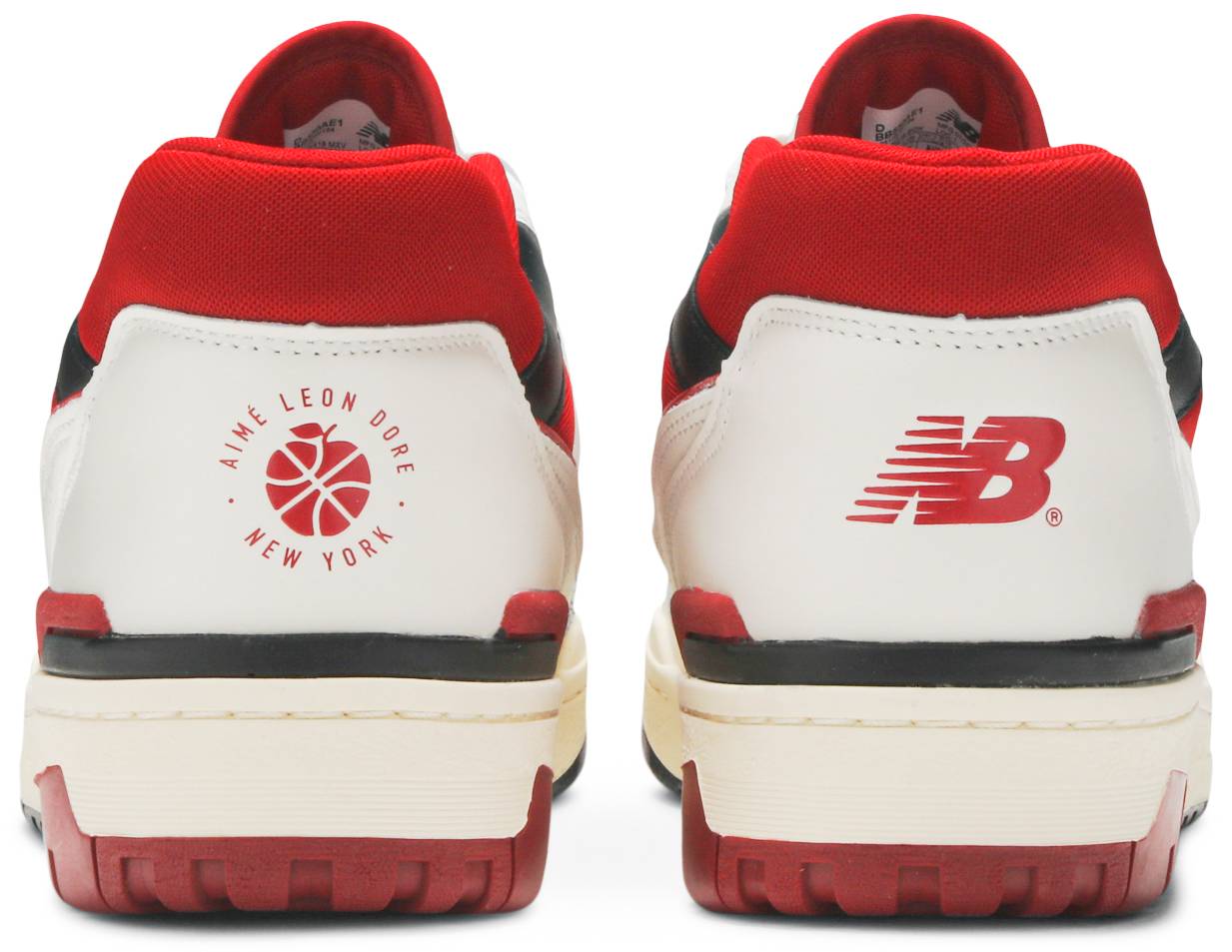 Made in collaboration with the New York-based menswear brand, the Aimé Leon Dore x New Balance 550 ‘Red’ revives a forgotten basketball shoe kept out of circulation since its original release in 1989. An off-white leather upper is enlivened with contrasting red and black accents throughout, including a cracked leather ‘N’ logo on the quarter panel. Aimé Leon Dore branding lands on both tongue tags and the heel overlay of the left shoe. A pre-yellowed midsole amplifies the vintage look.