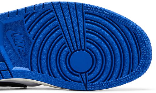 The Air Jordan 1 Retro Low OG 'Game Royal' combines a crisp white base with royal blue overlays at the forefoot and heel. Black textile lines the low-cut collar, matching the signature Swoosh and the Wings logo stamped on the back tab. A woven Nike Air tag sits atop the breathable nylon tongue. Anchoring the sneaker is a vintage off-white midsole, supported underfoot by a durable blue rubber outsole.