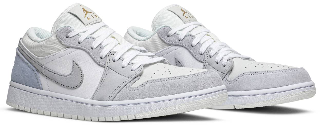Launched as part of a three-piece City Pack exclusive to Europe, the Air Jordan 1 Low 'Paris' draws inspiration from the blue skies and sandstone buildings of the French capital. Consequently, the low-top uses refined shades of blue, gray and white on the leather and suede upper. Breathable textile is applied to the padded collar and tongue, the latter embellished with a Jumpman-branded leather tag. A Jordan Wings logo debossed on the heel panel is the finishing touch.