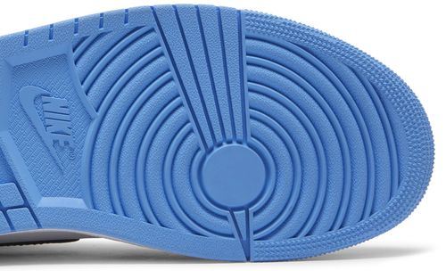 Inspired by Michael Jordan’s alma mater, the Air Jordan 1 Retro High OG ‘UNC Toe’ brings back the distinctive color blocking originally featured on the ‘Bred Toe’ AJ1 from 2018. The high-top utilizes an all-leather upper with white quarter panels and contrasting hits of black on the signature Swoosh and forefoot overlay. University Blue accents make their way to the toe box, heel and collar flap, marked with a retro Wings logo on the lateral side. A woven Nike tag atop the breathable nylon tongue delivers an OG-inspired touch. Lightweight cushioning arrives via a white rubber midsole with an Air-sole heel unit encapsulated in a polyurethane wedge. Underfoot, a blue rubber outsole provides durable traction with every step.