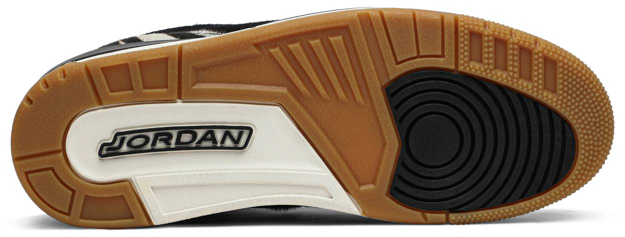 Nike Air Jordan 3 Retro SP from the 'Animal' pack is a wild spin on the hoops icon. The sneaker presents an upper covered in black pony hair flaunting leopard-print panels, zebra stripe detailing and 'Instinct' under the tongue. A color-pop Jumpman to the tongue and bright heel tab play up the bold aesthetic. Set below the Air-imbued midsole, a gum rubber outsole wraps up the design.