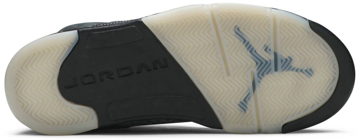 The Air Jordan 5 Retro ‘Anthracite’ delivers a reconfigured version of the classic silhouette. Standard design hallmarks of the Air Jordan 5 — including ‘23’ branding on the lateral heel and shark-tooth detailing on the midsole — decorate an unorthodox build that combines soft suede with breathable textile on the vamp and midfoot. Reflective treatment typically found on the tongue is relocated to the matte silver quarter panel, featuring oblong perforations that replicate the shoe’s traditional netting.