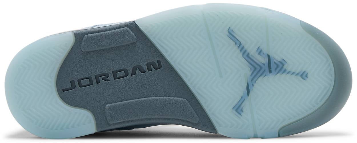 The women’s Air Jordan 5 Retro ‘Blue Bird’ treats the retro silhouette to a vibrant makeover. An energetic shade of blue is executed on a suede upper furnished with standard AJ5 details, including lace locks, molded TPU eyelets and clear netting across the quarter panel. A blue Jumpman is embroidered atop a silver reflective tongue, complementing silver shark tooth detailing on the polyurethane midsole. Underfoot, an icy blue rubber outsole features a herringbone traction pattern for maximum grip.