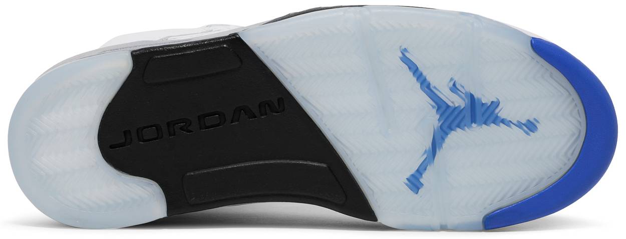 The Air Jordan 5 Retro ‘Stealth 2.0’ delivers a refreshed take on the original ‘Stealth’ Air Jordan 5 from 2006. The mid-top makes use of tumbled white leather throughout the upper, accented with powder blue Jumpman branding on the back heel and reflective silver tongue. A pale grey finish is applied to the midsole, featuring a visible Nike Air unit in the heel and a subtle paint splatter effect on the AJ5’s signature shark tooth detailing.