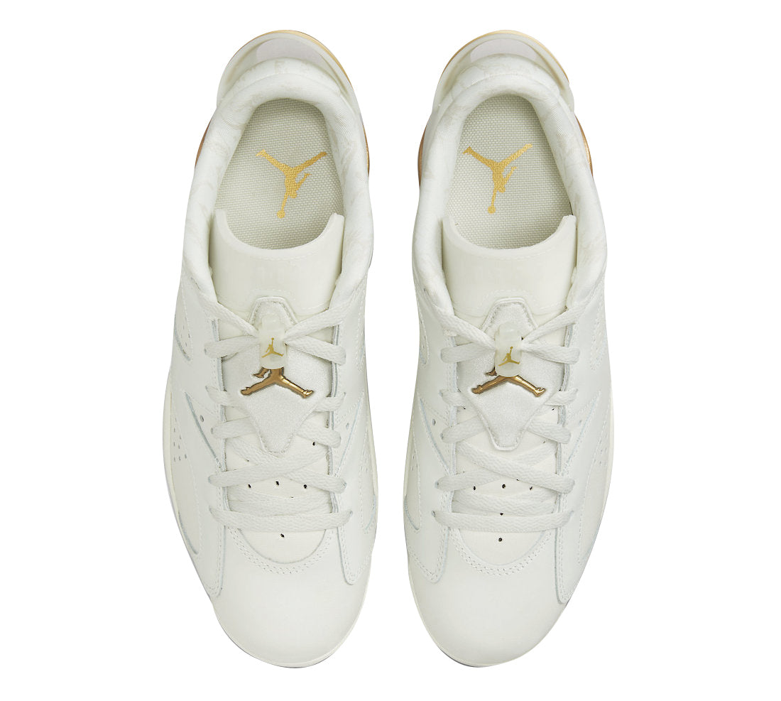The Air Jordan 6 Low ‘Lunar New Year’ rings in the lunar holiday with a refined two-tone palette. The low-top makes use of an ivory-colored leather upper with gilded Jumpman branding hits atop the tongue and back heel. Matching metallic gold accents are applied to the spoiler-like TPU heel tab and polyurethane midsole, fitted with a visible Air-sole unit in the heel for lightweight cushioning. Underfoot, a translucent rubber outsole provides grippy traction.