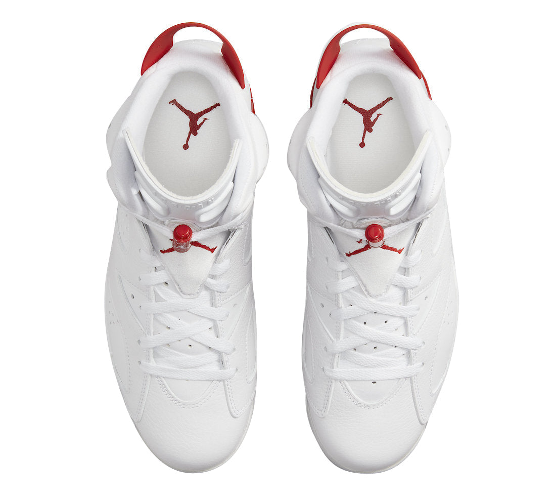 The Air Jordan 6 Red Oreo comes dressed in a White, University Red, and Black color scheme. The base of the sneaker is covered in White leather, which is then contrasted by the Red hits found on areas that include the heel tab, midsole and tongue branding. The “Oreo” theme comes by way of the White speckling on the tongues, heel pull tabs, lace locks and midsole. White laced and an icy translucent outsole round out the main features of the sneaker.
