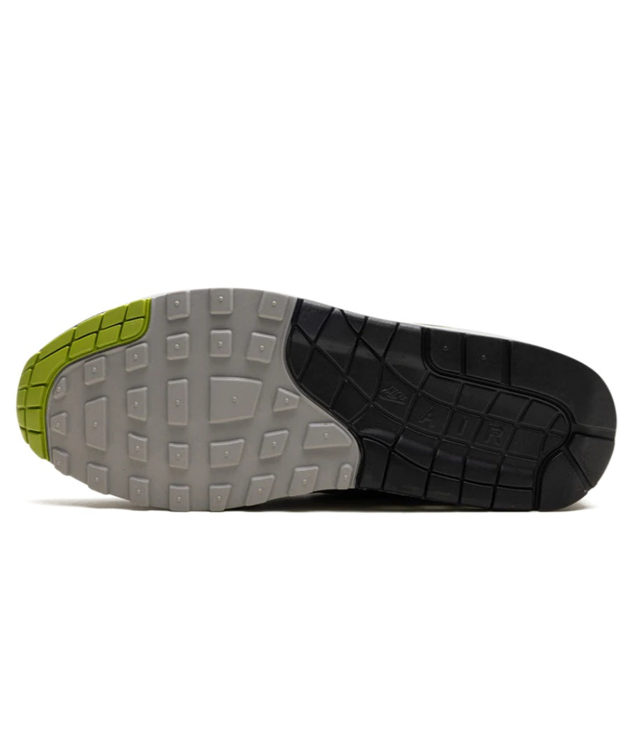The HUF x Nike Air Max 1 SP “Pear” is a collaboration between the San Francisco based skate brand and Nike on the retro running shoe. From a three-piece collection, the “Pear” celebrates the 20th anniversary of the brand’s first project released in 2004. Moreover, the pack is inspired by an unreleased sample Air Max 1 by HUF. Here, the upper features a grey nubuck construction with Anthracite-colored cracked leather on the forefoot overlay and mudguard. Pear accenting can be found on the leather Swoosh, “Nike Air” branding on the heel, the co-branding on the tongue tag, and inner lining. Two-tone black-and-green laces complete the look.