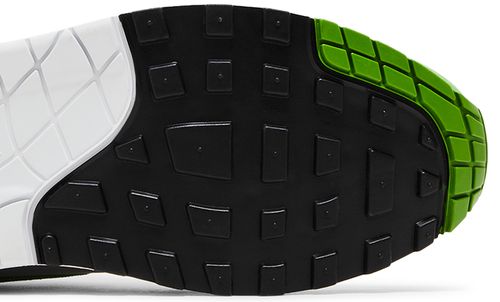 The 2024 edition of the Patta x Nike Air Max 1 'Chlorophyll' brings back a coveted collaboration in honor of the Amsterdam-based label's 20th anniversary. Originally released in 2009, the retro runner features a white mesh upper with a grey leather midfoot overlay. Bright green textile is utilized on the signature Swoosh and mudguard. A tonal mini-Swoosh is embroidered on the lateral forefoot, while Patta branding appears on the woven tongue tag and sockliner.