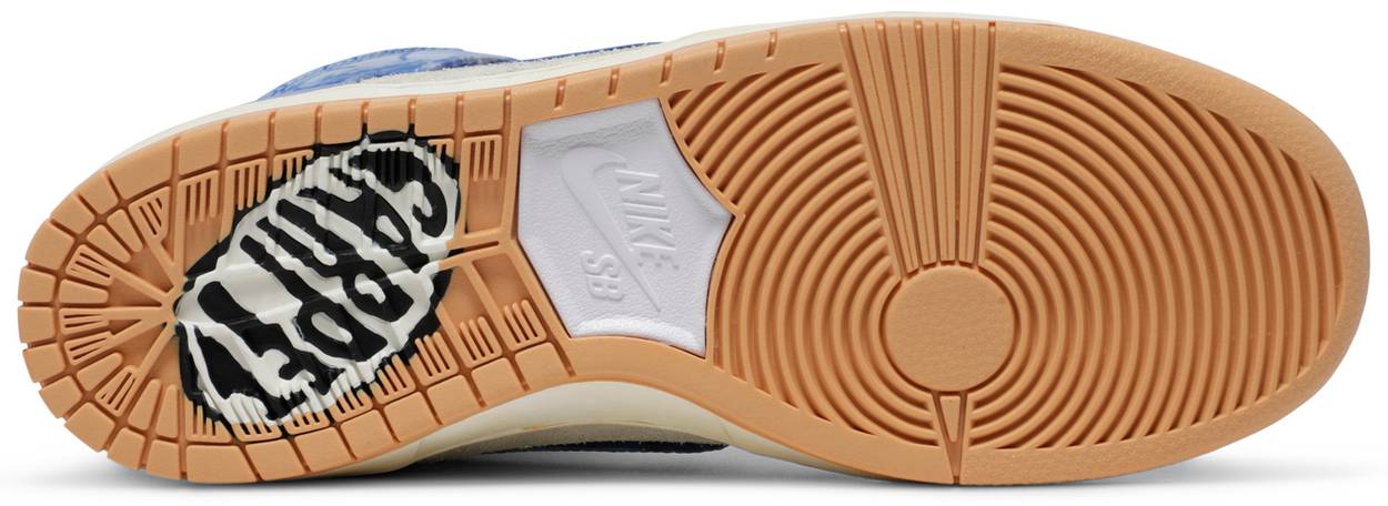 The Carpet Company x Nike Dunk High SB represents the Swoosh’s first collaboration with the Baltimore skate brand, founded in 2015 by a pair of brothers, Ayman and Osama Abdeldayem. Their take on the retro high-top features a white leather upper with semi-translucent blue overlays, inspired by screen printing and designed to wear away with prolonged use. Underneath the fabric, a yellow leather base is accented with a series of whimsical graphics. Additional tearaway detailing on the back heel reveals hidden Carpet Company branding, joining the label’s embroidered star logo on the lateral heel and a Carpet wordmark on the rubber outsole.
