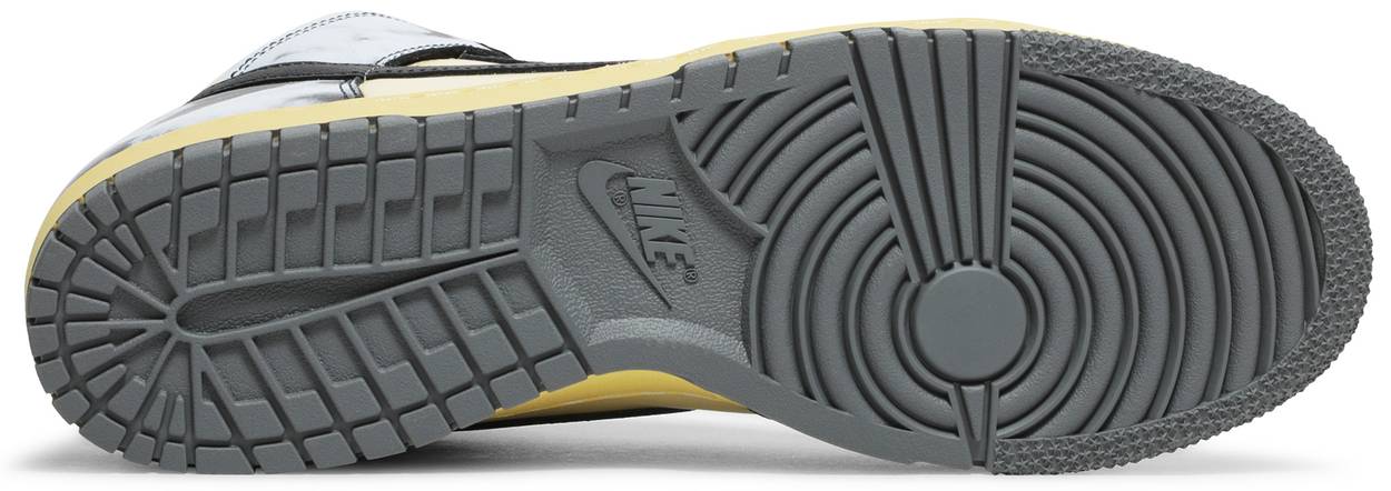 The Nike Dunk High 1985 ‘Black Acid Wash’ stays true to its retro roots, featuring an OG shape and a unique color treatment that originated in the ‘80s. The leather upper features a pale yellow base with contrasting black overlays rendered in a unique acid wash finish. A solid black leather Swoosh cuts through the side panel, while a woven Nike tag adorns the lightly padded nylon tongue. A pre-yellowed midsole accentuates the shoe’s vintage aesthetic. Underfoot, a grey rubber outsole delivers grippy traction.
