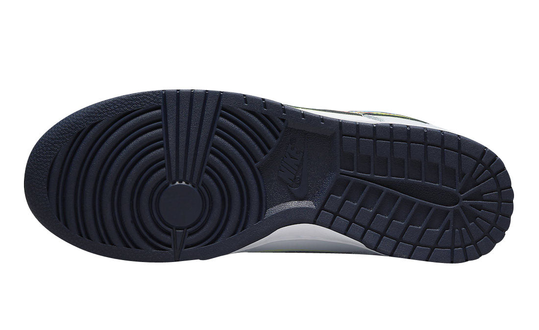 This Nike Dunk Low is highlighted with 3D-styled Swooshes on its side panels. Overall, the low-top dons a white leather base that is offset by light grey overlays. The defining 3D-interpreted Swooshes are executed by colorful Swooshes overlaying the large navy branding, while a white midsole and navy rubber outsole round out the profile