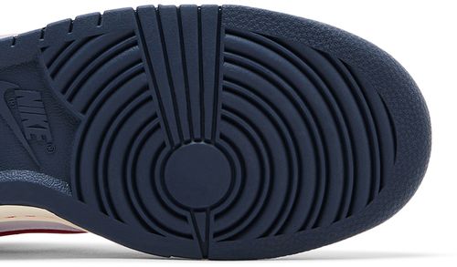 Dropping as part of the 'Rivalry Pack,' the Nike Dunk Low 'Boston Red Sox' sports a smooth leather upper, featuring a white base complemented with a forefoot overlay and signature Swoosh in University Red. Thunder Blue accents land on the heel overlay and back tab, branded with an embroidered Nike wordmark. Faux red stitches along the laces underscore the baseball theme.