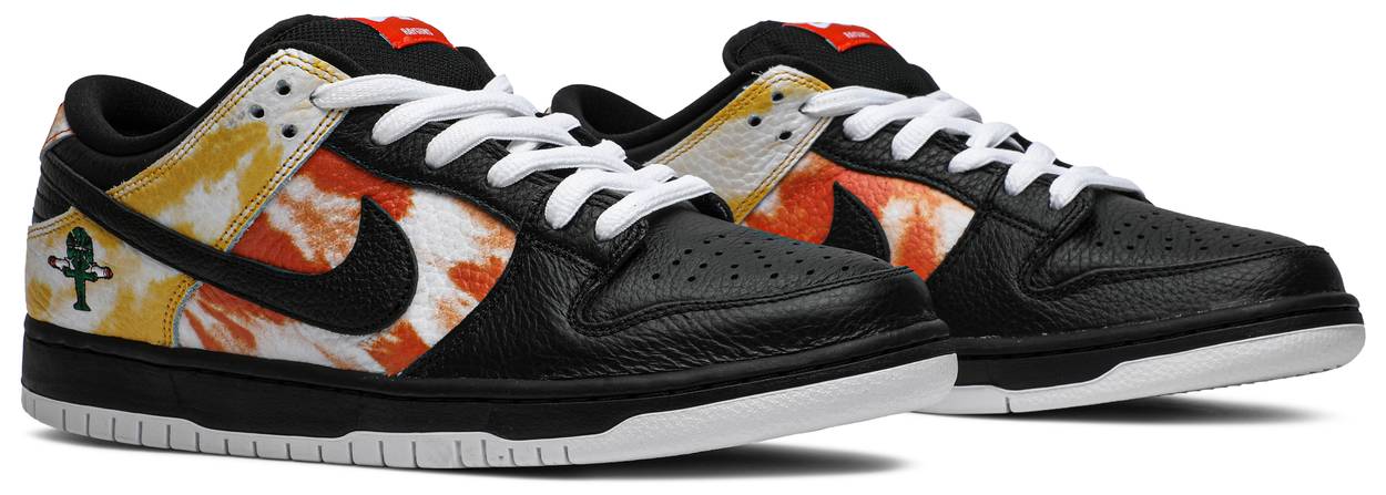 Dunk SB Low 'Tie-Dye Raygun - Black' brings back a fan favorite from the height of Nike SB’s Pink Box era. The design is updated with a tie-dye effect in honor Sandy Bodecker, the late Nike executive credited for the success of the Swoosh’s skateboarding division. The shoe itself is inspired by the Roswell Rayguns, a fictional ABA team featured in a Nike Basketball marketing campaign from 2002.