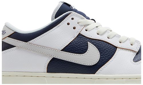 The HUF x Nike Dunk Low SB ‘New York’ celebrates the 20th anniversary of the streetwear brand founded by Keith Hufnagel. This pair honors the late professional skateboarder’s New York roots, highlighted by a tumbled leather upper that combines a navy base, white overlays, and an off-white Swoosh. The HUF logo — along with a jeweled mini-Swoosh — adorns the toe box, while thin nylon tongues display woven tags featuring Nike SB and New York City branding. ‘Keith Forever’ is embroidered across the heel tabs, which sit just above navy panels marked with an embossed graphic depicting a retro NYC skyline. Inside the shoe, mismatched sockliners in HUF’s signature lime green hue showcase mismatched HUF and Nike SB branding. Finally, excising the leather quarter panel with a sharp blade reveals a hidden tie-dye print on canvas, nodding to HUF’s Dunk High collaboration from 2004.