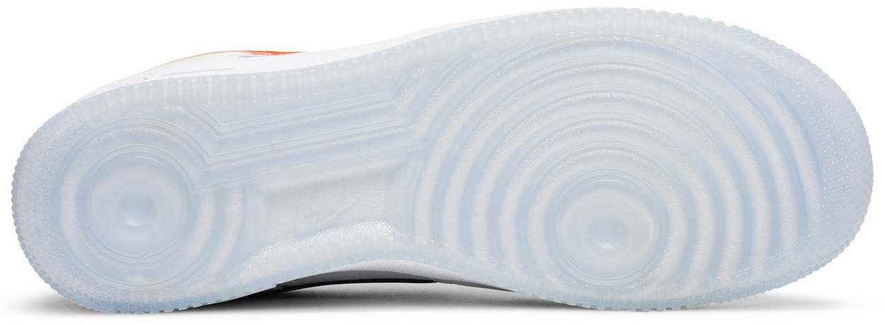 The Kith x Nike Air Force 1 Low ‘NYC’ features a distinctive color scheme inspired by the retailer’s hometown team, the New York Knicks. The low-top makes use of a white tumbled leather upper accented with mismatched TPU Swooshes in gradient blue and orange. Kith Air is embroidered on the heel tab, while a NYC Swoosh graphic adorns the lateral heel. A third branding element, depicting a Nike Swoosh superimposed on the Kith logo, graces the tongue tag and sockliner. Underfoot, the AF1’s signature pivot point outsole is rendered in translucent rubber.