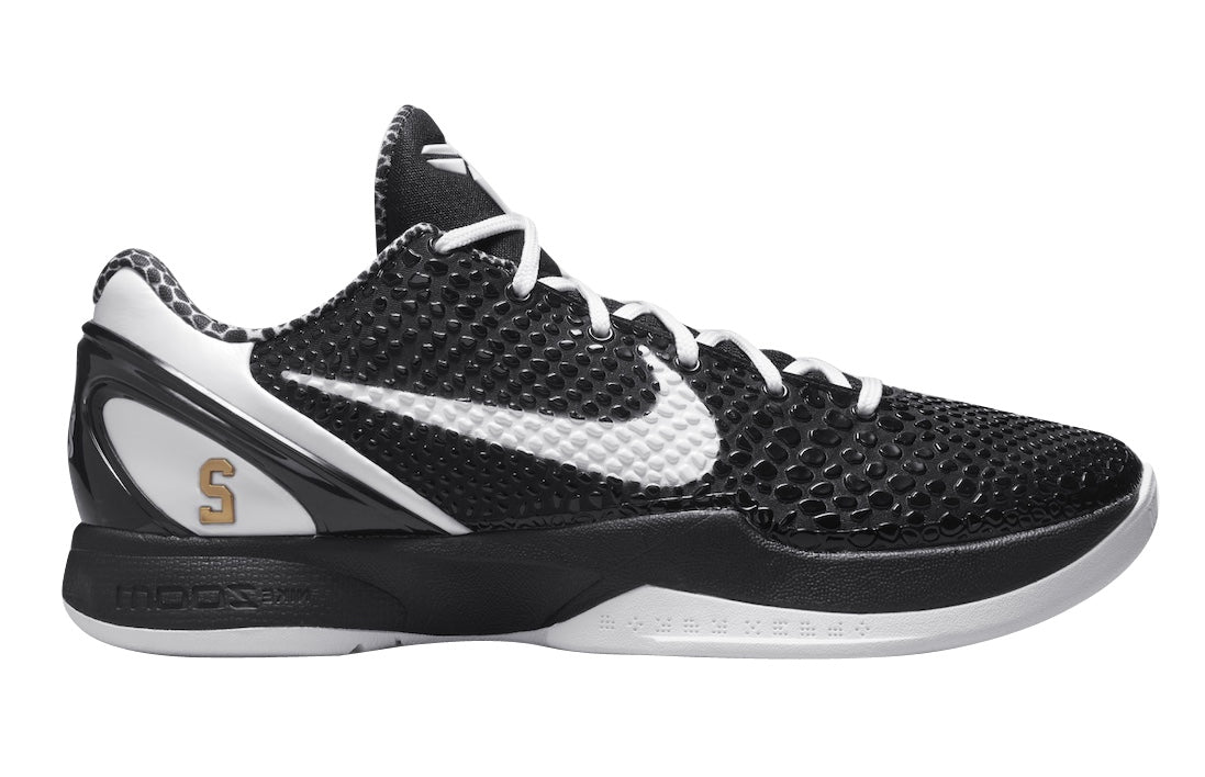 The Nike Kobe 6 Protro Mambacita Sweet 16 will honor Gigi Bryant with all proceeds from the shoe benefiting the Mamba and Mambacita Sports Foundation. Done in a color combination of Black, White, and Metallic Gold, design details include a Black snakeskin textured upper contrasted by White on the laces (also comes with Black laces), Swooshes, tongue branding, heels, and rubber outsole. The sneaker also come equipped with snakeskin print used on the inner lining as well as the Mamba & Mambacita Sports Foundation logo on the heels. Elsewhere you will find Kobe and Gigi’s name printed on the left and right shoe, respectively along with Gigi’s number “2″ stamped in Gold on the lateral heel.