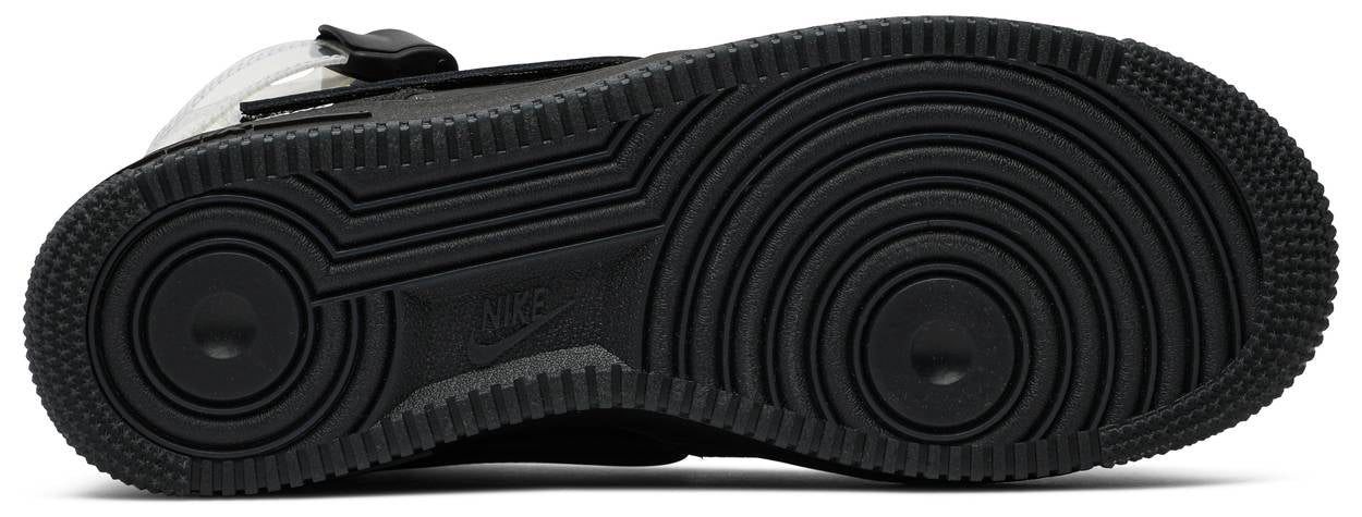 Artist Lauren Halsey honors her Los Angeles roots with the Nike Air Force 1 High '07 LE 'ALL FOR 1' sneaker. Unveiled in December 2019, the sneaker expresses a triple-black scheme on the dual-textured leather and suede upper with an interchangeable strap, glossy Swooshes and a hand-lettered dubrae. Mismatched laces and a collage on the insole evoke the vibrancy of South Central. Reflective text on the heel and a split-colored rubber cupsole wrap up the homage.