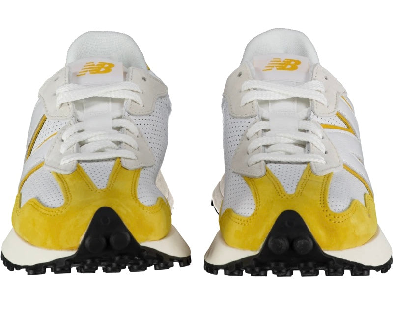 Dropping as part of the three-piece ‘Primary Pack,’ The New Balance 327 ‘Yellow’ dresses the retro-inspired lifestyle runner in a simple two-tone palette that speaks to the shoe’s ‘70s roots. The upper is constructed from a combination of white perforated leather with yellow pigskin suede overlays at the toe and heel. The same mustard hue frames the oversized ‘N’ centered on the lateral side panel. The sneaker rides on a lightweight EVA midsole, supported underfoot by a studded rubber outsole.
