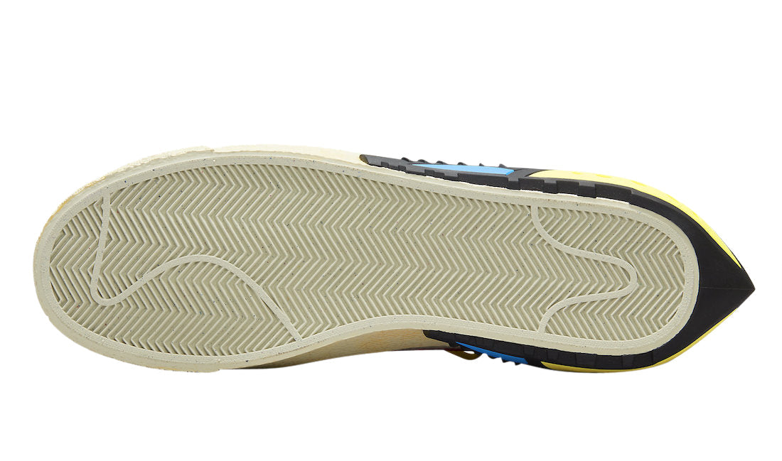 In true Off-White fashion, this collaborative iteration of the Nike Blazer Low is equipped with features that include the overlapping laces, the text on the sides, circular cutouts, yellowed midsoles, a retooled heel piece with foam at the rear, plastic inserts, and colored speckles. This colorway opts for a White leather upper, Red accents on the Swoosh and heel tab and canvas overlays on the mudguard region.