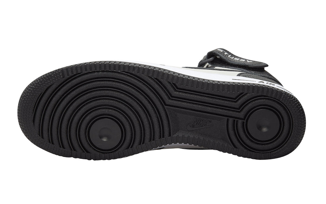 This collaborative Nike Air Force 1 Mid starts off with a White/Light Grey leather on the base of the upper which is then contrasted by Black on the overlays as well as the Swooshes, laces, inner liner, and the ankle strap. Stussy branding is then noted on the tongue tags, insoles, jewel embellishments on the heels, Stussy text on the strap, and double “S” perforations at the toe box. Down below we see a white rubber midsole and black rubber outsole to wrap things up.