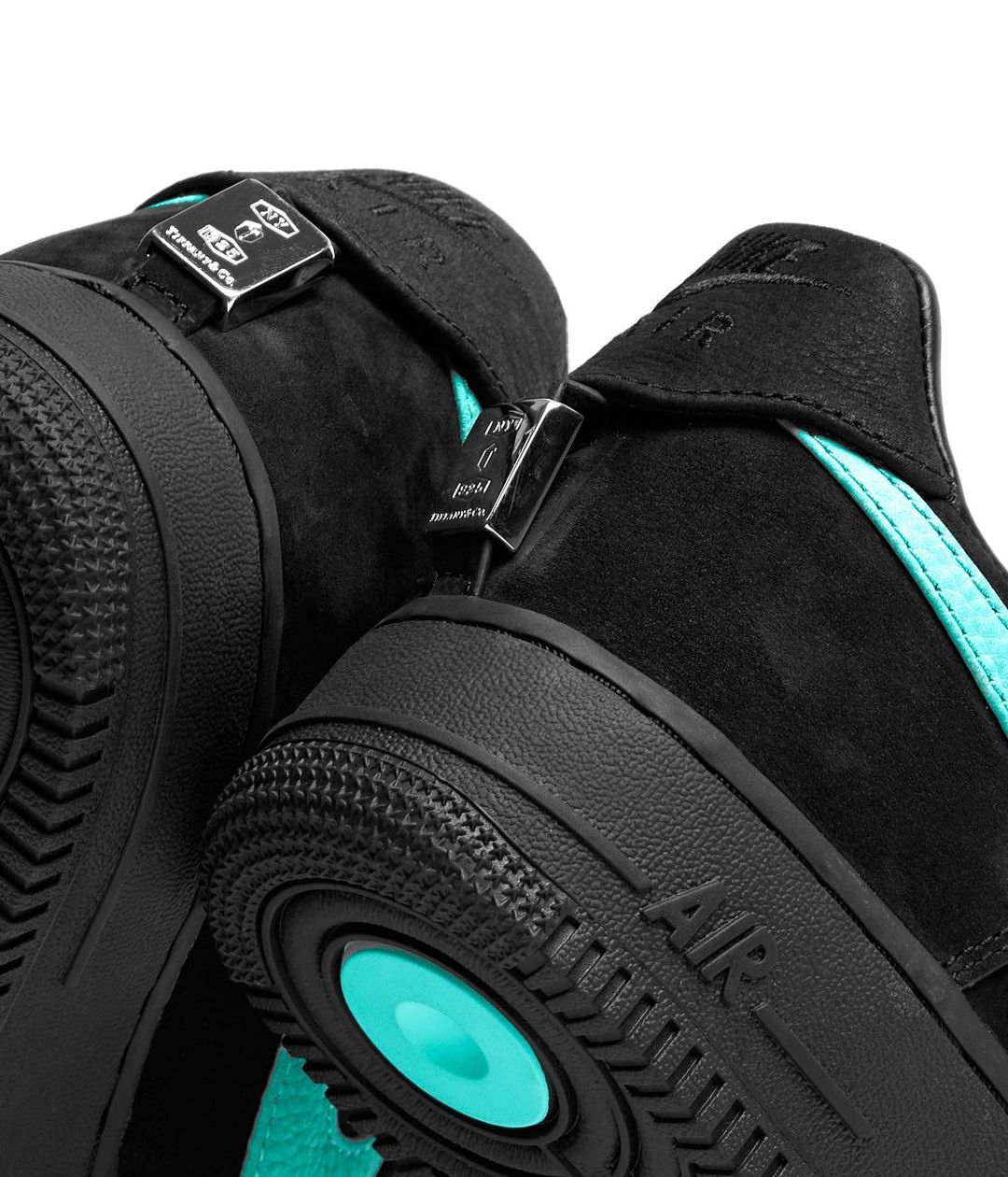 The Tiffany & Co. x Nike Air Force 1 Low ‘1837’ delivers the debut collaboration between the iconic New York-based jeweler and the Swoosh. While the ‘Diamond’ Dunk SB from 2005 paid homage to the luxury emporium by featuring a leather base in Tiffany’s signature hue, this AF1 release makes the brand partnership official. Named after Tiffany’s founding year, the low-top utilizes a black suede upper with a tumbled leather Swoosh in the instantly recognizable shade of robin’s-egg blue. Woven tongue tags display ‘Tiffany’ script, while traditional ‘Nike Air’ branding appears in tonal embroidery on each black leather heel tab. Below that, an engraved Tiffany badge shines in metallic silver. Tiffany unveiled a range of sterling silver accessories to accompany the premium kicks, available separately from the AF1: a shoe horn, a shoe brush, lace dubrae and a whistle chain.