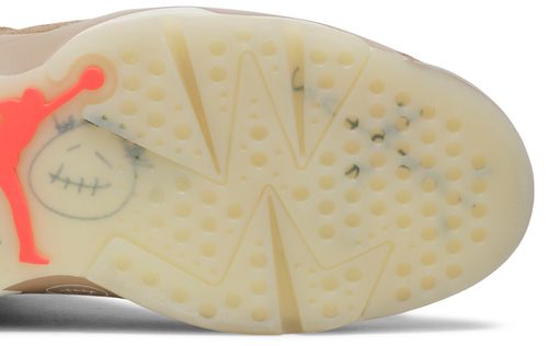 Following on the heels of the coveted ‘Olive’ colorway from 2019, the Travis Scott x Air Jordan 6 Retro ‘British Khaki’ reunites Jordan Brand with the Houston rapper. The upper is crafted with suede and canvas, accented with Bright Crimson details. The stash pouch makes a repeat appearance on the lateral collar, while new zippered detailing is added to the medial side. Mismatched Nike Air and Cactus Jack branding adorns the heel of the left and right shoe, with additional graphics on the midsole, outsole, tongue and lace lock.