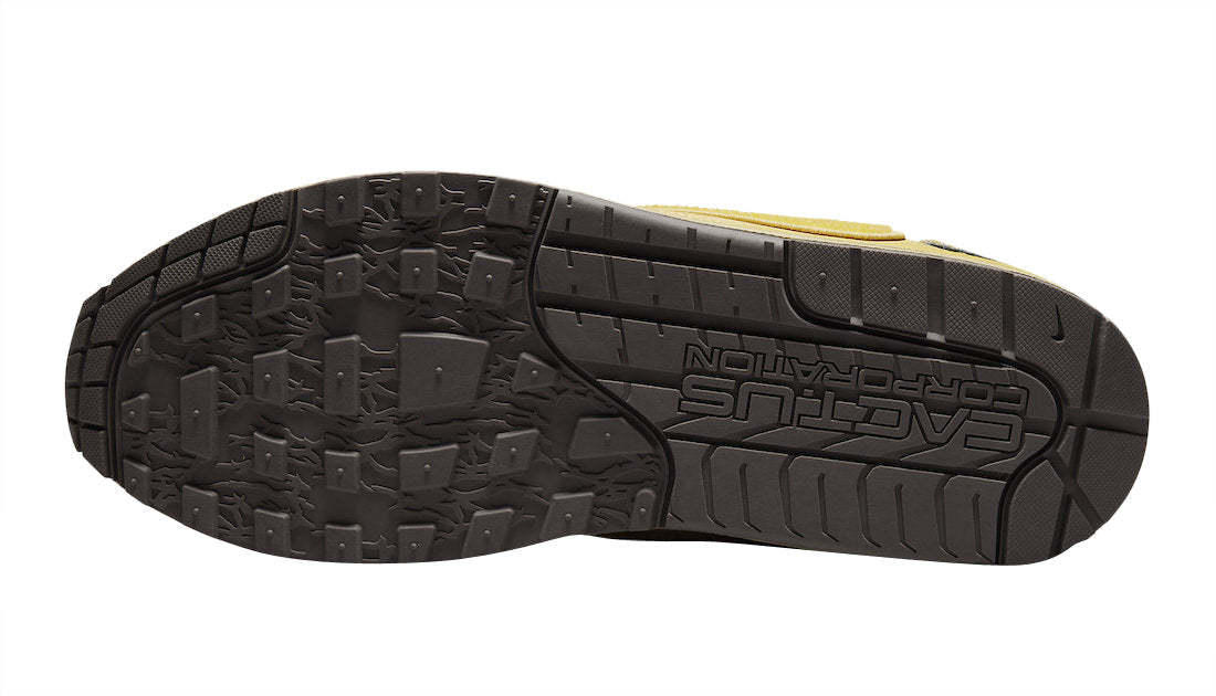 Cactus Jack is coming to town, and with it, he's bringing CACT.US CORP's Utopian goods and services. Determined to deliver a uniform to complement a new state of mind, CACT.US CORP imagined, designed, and built this Air Max 1 for Utopians everywhere. Simply put, this sneaker is made to thrive wherever it happens to be, but it carries CACT.US CORP's unique aura and durable designs. Inspired by the ACG Pocket Knife, a drawstring Gillie lacing system, custom nubuck and mesh-patterned overlays on the upper recall the '90s utilitarian classic. This Air Max 1 features a rubberized Cactus Jack tongue logo and a custom CACT.US CORP outsole, and while the lateral side displays an unmistakable reverse Swoosh, the medial side of the sneaker's design stays true to its OG Air Max 1 roots. It’s a juxtaposition fitting of CACT.US CORP's work — that of entering a new space as your old self and emerging with a Utopian state of mind.