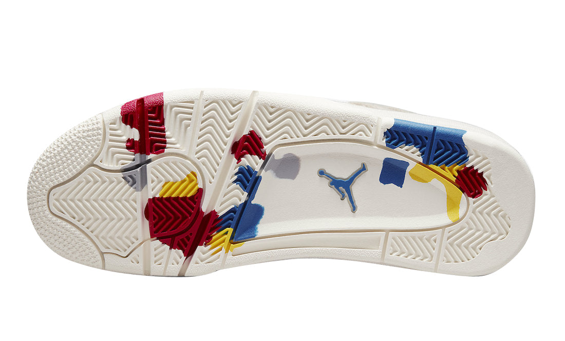 Opting to keep it clean and simple, this women’s colorway of the Air Jordan 4 opts for a lifestyle aesthetic consisting of a Sail canvas construction that extends on to the wings, tongues, and even a portion of the midsole. Opting for a tonal finish, Sail detailing lands on the inner liner, branding, and the rubber outsole which happens to come with Red, Yellow and Blue paint splatter.
