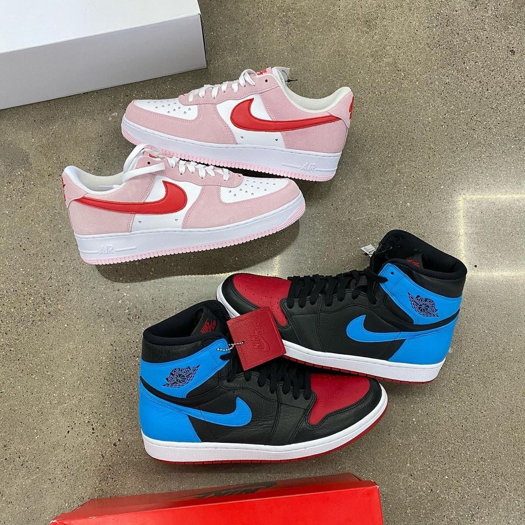 The Nike women’s Air Max 90 ‘Valentine’s Day’ delivers a playful, pastel colorway of the lifestyle runner. The upper combines a white leather base with pink suede overlays, a red leather Swoosh and white leather mudguard. Unique details include heart-shaped eyelets and an additional heart-shaped icon integrated into Nike Air branding on the molded heel patch. Atop the tongue, a snap-button Nike tag opens up to reveal ‘ME + AM90 = TRUE LOVE’ on the left shoe and ‘AM90 4EVER’ on the right.