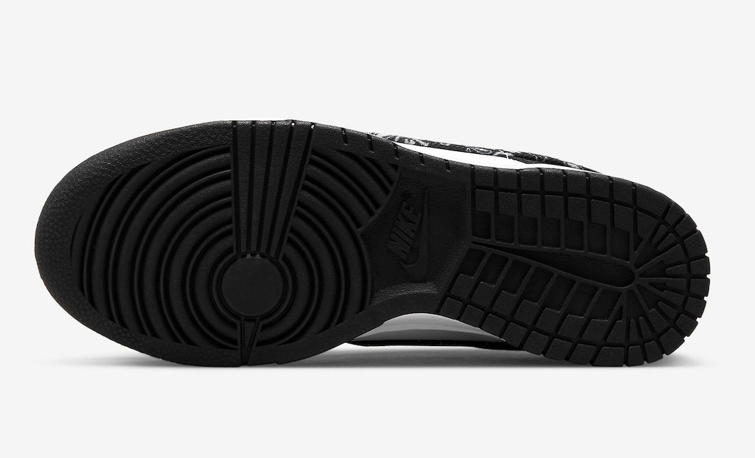 The Nike Dunk Low WMNS Black Paisley comes dressed in a White leather upper paired up with Black leather overlays and additional Black hits on the nylon tongues, laces, insoles and rubber outsole. Just like all the other pairs from the pack, this Dunk Low also come with paisley bandana print on the Swooshes and heel tabs. More White hits land on the branded tongues, heels, insoles and midsole.