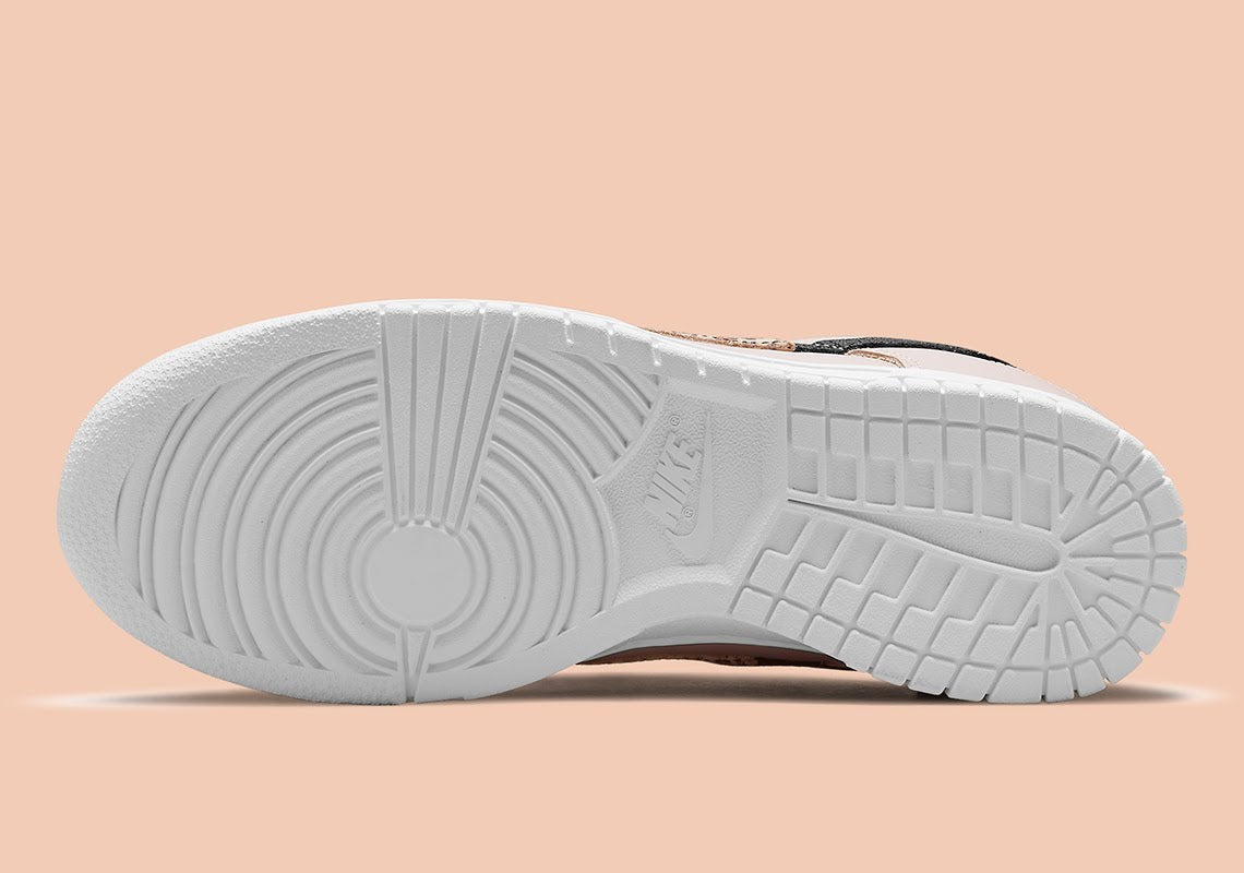 This exact style has emerged with a dusty pink leather upper and the same three-pronged logo that features leopard spots at the hook, reptilian finishes in the middle, and a cracked elephant skin on the tail end. Much like the all-white and black/white versions that were shown before, this Dunk Low also features a solid white midsole and outsole combination, providing a clean platform for these made-for-lifestyle options. Matching laces and tongue labels continue the monochromatic appeal, while a white contrast is utilized on the tongue logo and heel text.