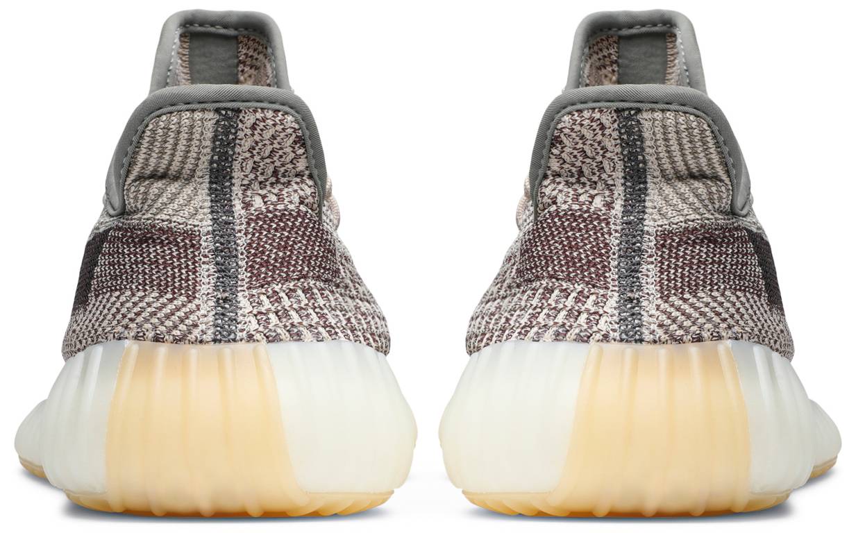 The adidas Yeezy Boost 350 V2 ‘Zyon’ showcases various woven patterns on the breathable Primeknit upper, executed in a subdued blend of earth tones. The collar is trimmed in neutral grey, while the signature post-dyed monofilament stripe cuts through the sneaker’s lateral side in a dark brown finish. Full-length Boost cushioning is visible through the semi-translucent rubber midsole, reinforced underfoot by a gum rubber outsole.