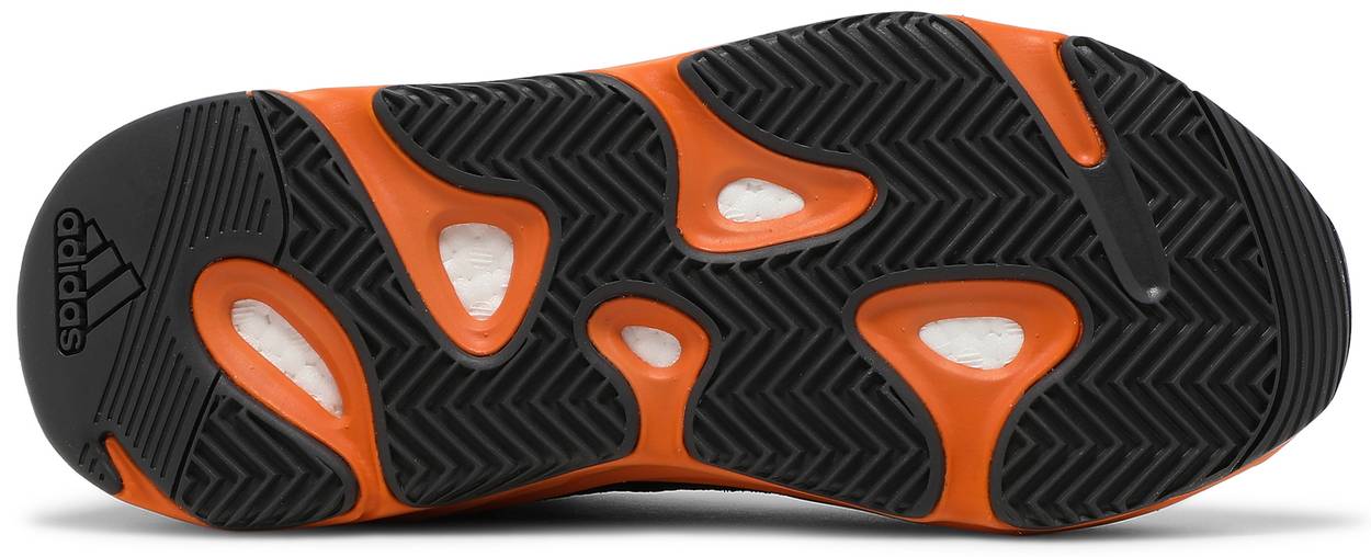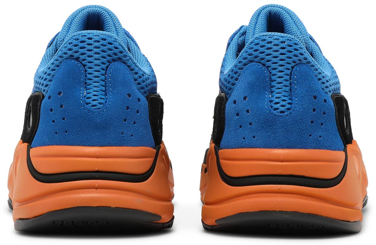 The adidas Yeezy Boost 700 ‘Bright Blue’ uses sharply contrasting finishes to delineate the lifestyle runner’s upper and tooling. The latter pairs sculpted orange sidewalls with a contrasting black rubber outsole, featuring a herringbone traction pattern with cut-out detailing that reveals a drop-in Boost midsole. Up top, royal blue mesh is reinforced with tonal suede overlays at the toe and heel, along with black suede midfoot panels enlivened with reflective detailing.