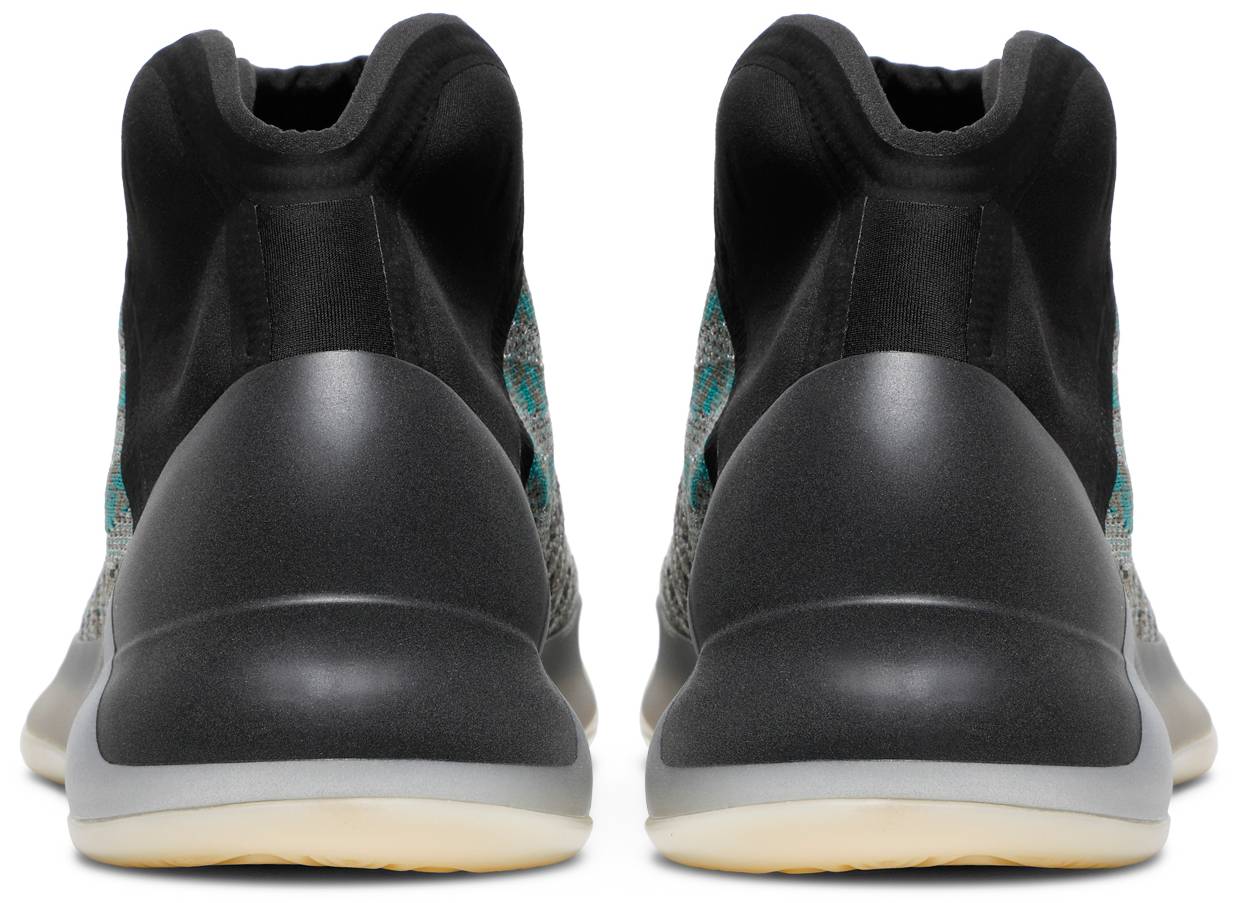 The adidas Yeezy Quantum ‘Teal Blue’ delivers a lifestyle variation of Kanye West’s performance hoops shoe, highlighted by a patterned knit upper that blends bright teal accents with varying shades of grey. A tonal suede overlay adds durability along the toe, while a pronounced heel counter in a contrasting black finish provides rearfoot support. Responsive cushioning is provided by a full-length Boost midsole encased in semi-translucent rubber.